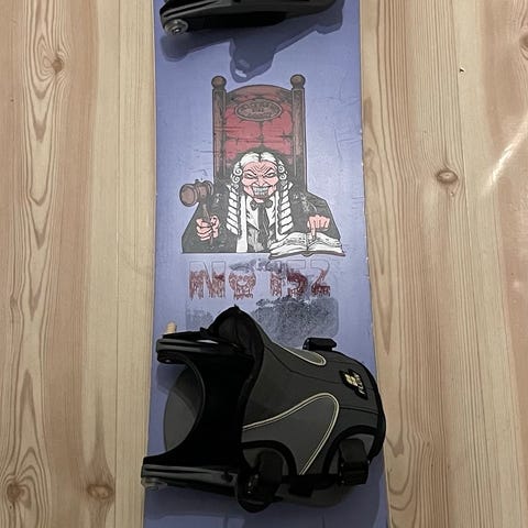 Bra nybörjarbräda. Bakkappan på ena bindningen har gått av, se bild två, men det är ingenting som påverkar funktionen. Alla spännen fungerar som de ska.