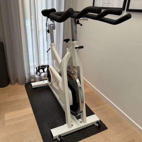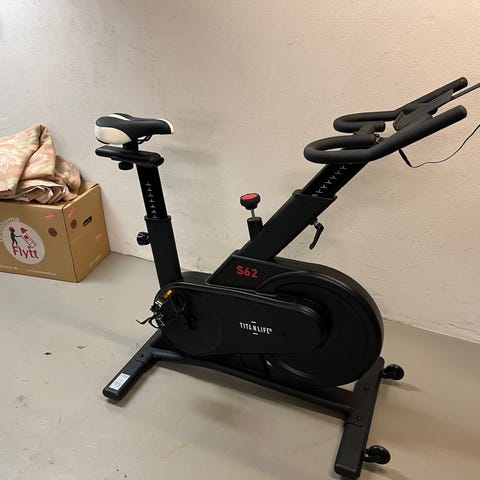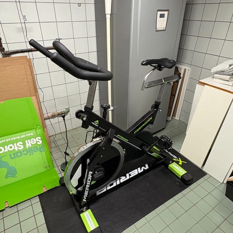 Abilica Spinningcykel i vit färg. Cykeln har en robust ram och är avsedd för inomhusträning. Den är utrustad med justerbart styre och sadel för anpassning efter användarens behov. Mycket bra skick. Stabil och mycket effektiv träning 💪