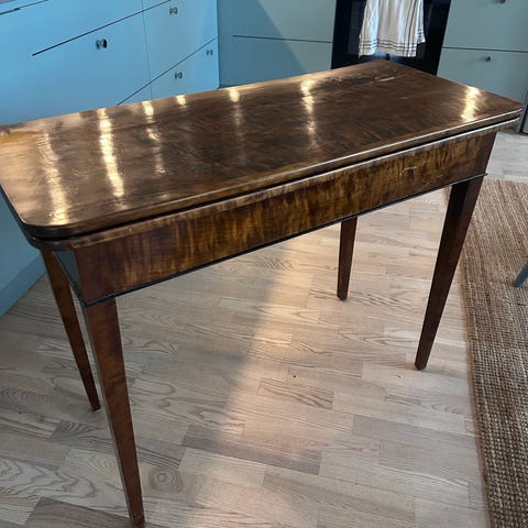 Två lådor, helt oanvända, kan skruvas på undersidan av bordet. Smidigt att lägga alla delar i.