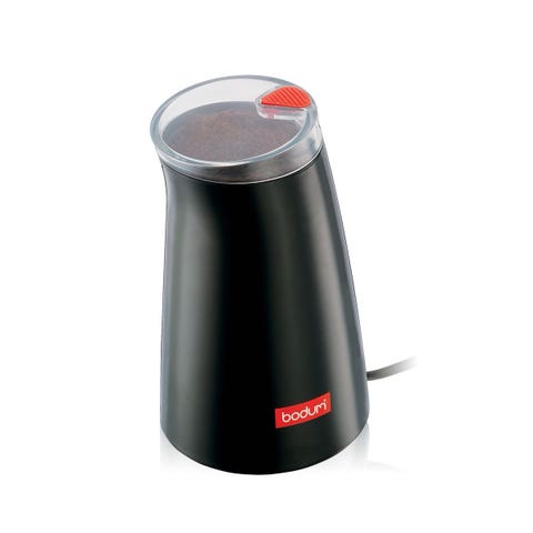 Bodum kaffekvarn i svart färg. Elektrisk kaffekvarn med slipmekanism för malning av kaffebönor. Mycket sparsamt använd.