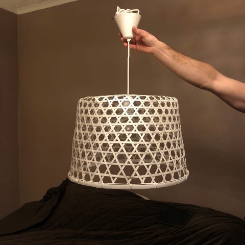 Vit IKEA Hemsta (lampa med rynkad tygskärm).