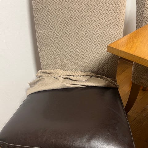 Matbord, 6 stolar. Finns ett brännmärke i bordsskivan.