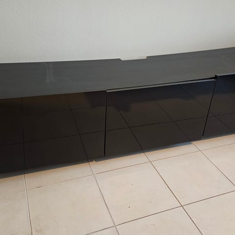 Säljer en IKEA BESTÅ TV-bänk med dörrar i färgen vit (Lappviken/Stubbart).