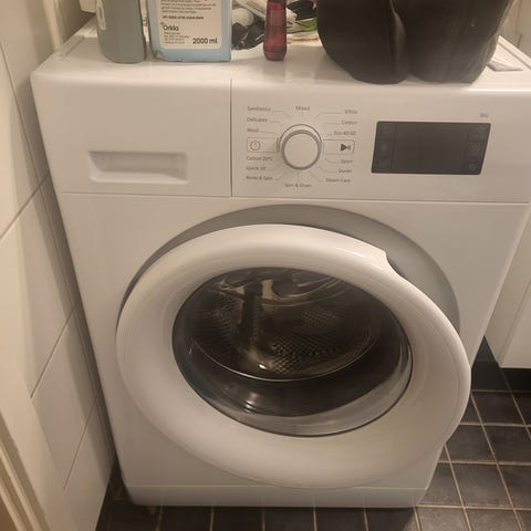 Maskinen är varsamt använd och köptes för drygt 3 år sedan. Den har en kapacitet på 7 kg och fungerar felfritt. Ett smidigt och platsbesparande alternativ, perfekt för mindre hushåll.