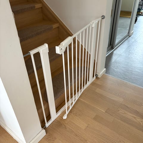 2 st Hauck barngrind i metall, med en förlängningsdel (9 cm). Se bild.
