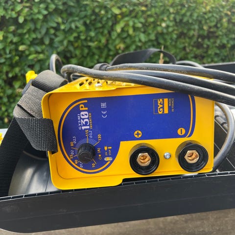 ESAB Mig C145 svetsmaskin med kabelanslutning och svetspistol. Maskinen är lämplig för MIG-svetsning och har en kompakt design för enkel hantering.