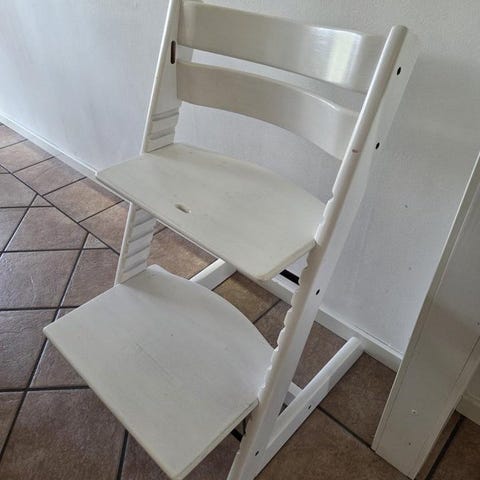 Stokke barnstol. Stolen kan justeras för att passa olika åldrar och storlekar. Tillverkad i robust material för hållbarhet och säkerhet vid användning.