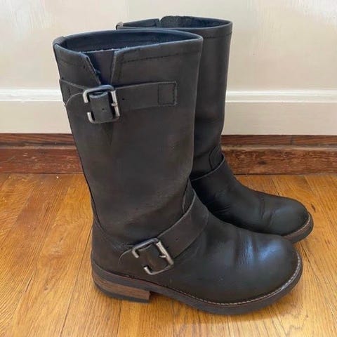 Säljes Roots Stövlar i storlek 41 i svart färg. Stövlarna är knähöga, tillverkade i läder och har en dragkedja på baksidan. De har en dekorativ rem med spänne runt vristen.