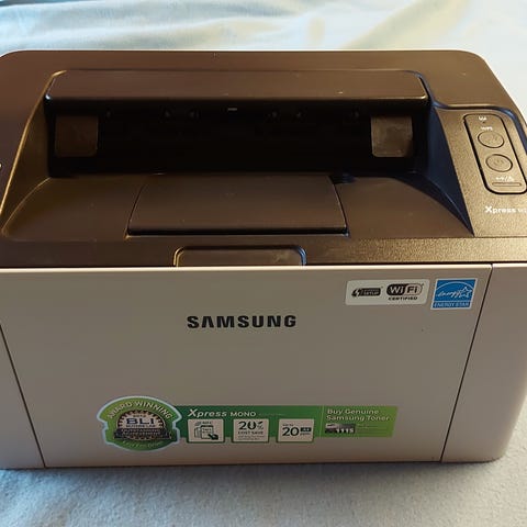 Laserskrivare som skriver ut bra, men går ner i viloläge stup i ett (= kräver omstart). Orkar inte ta reda på orsaken. Ny tonerkassett, ny trumenhet och nätsladd medföljer.