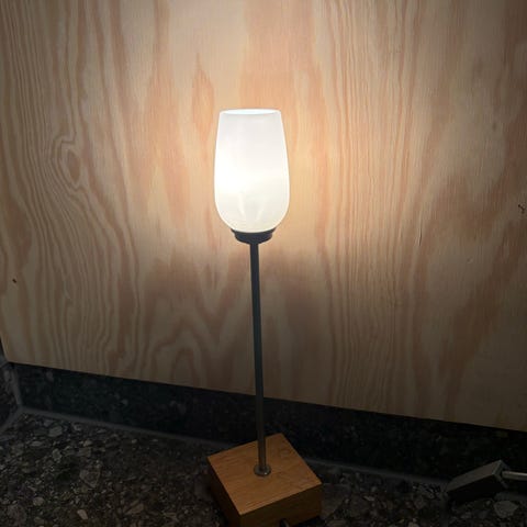 Bordslampa Sinnerlig av Ilse Crawford för IKEA. Kork och frostat glas.