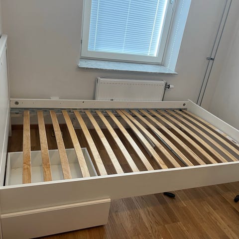🛻 Hämtas av köpare. Sängen är ej ner monterad. Vill ni ha det nermonterat säg till gärna till ,då det är lite bökigt att ta ut den genom dörren.