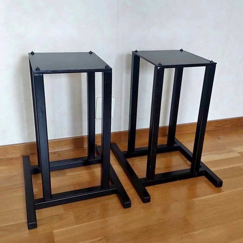 Notering: På båda stativen saknas en mycket liten bit gummi i hörnet på en av bottenfötterna (undersidan).