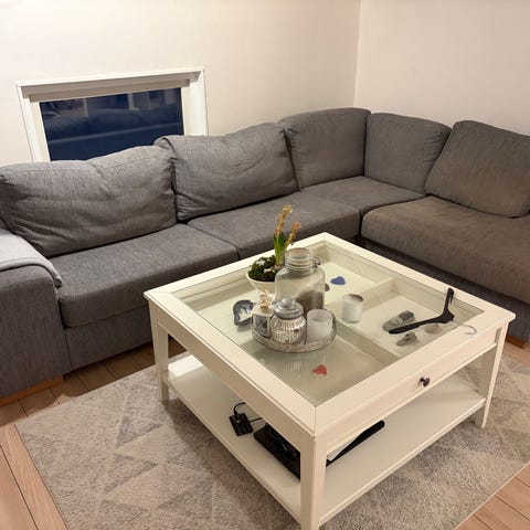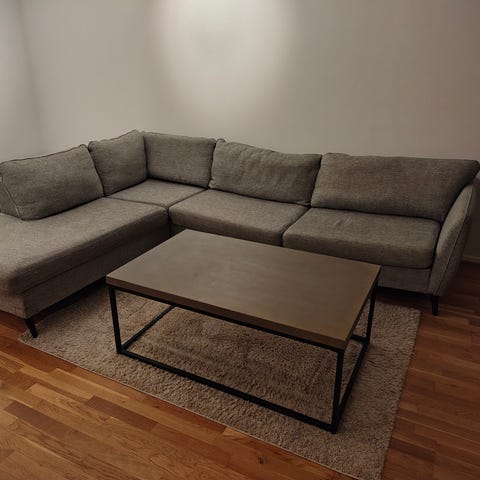 Skön och mjuk soffa, på ena dynan har tyget gått sönder ”dragkedjan” går att byta om man vet hur man gör.