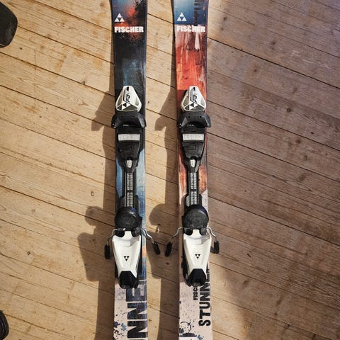 Fin och sparsamt använda barnskidor med bindning! Är vallade innan jag ställde undan dem men behöver dras av och nytt lager valla skulle inte skada!