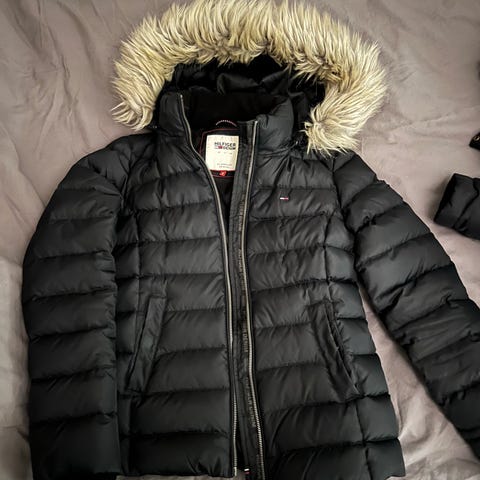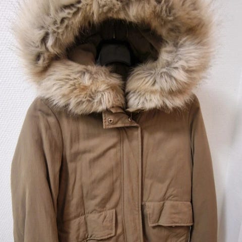 Maison Scotch Övriga ytterkläder i storlek S för kvinnor. Jackan är grå och tillverkad av bomull. Den har en huva med pälsdetalj och är vadderad på insidan för extra värme.