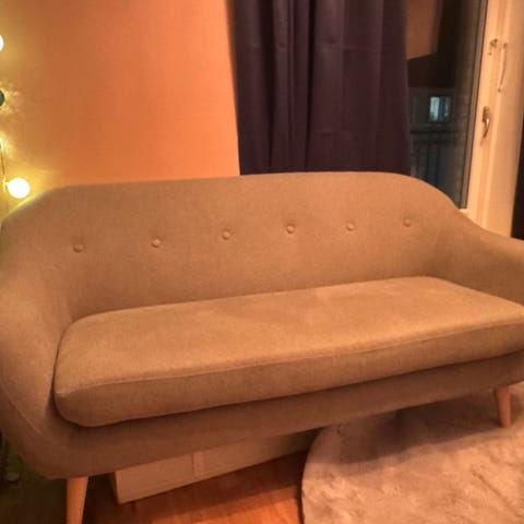 Sparsamt använd soffa, blev inte att använda den så nyttjats enbart när det kommit besök. Har katter men inga skador har skett. Använt kraftigt möbelklädsel som skydd ingår.