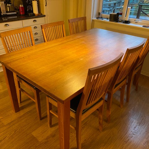 Bordsskivan Àr i gott skick men behöver oljning för att fÄ tillbaka ett frÀschare och mer nyoljat utseende.