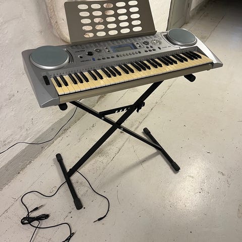 Casio CTK-3500 keyboard med 61 tangenter och inbyggda funktioner för musikskapande. Utrustad med olika ljud och rytmer, display för inställningar samt anslutning för hörlurar. Justerbart stativ för stabil placering ingår.