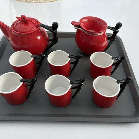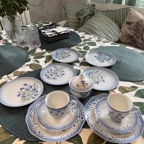 La Rose Des Sables Tunisien Porcelæn Kaffeservise med Blå og Gul Mønster