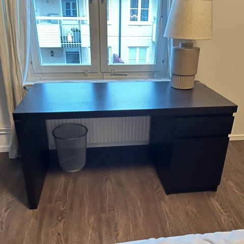 -Skrivbord från IKEA ”Malm”i vitt. Har även byggt till hållare för dator under skrivbordet se bild. Nypris 1800kr.