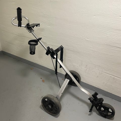 Turfmaster X-Air golfvagn med tre hjul. Lättkörd och hopfällbar med pumpbara hjul.
