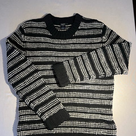 Merinotröja från EVISU. Strl large men liten i storleken. Absolut använd men fin! Lite noppor och litet hål (se bild)