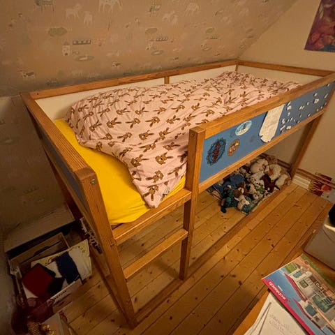Trästomme till hussäng / lektält. Kan monteras isär lätt. Mått: Längd 170 cm, bredd 80 cm och höjd 150 cm.