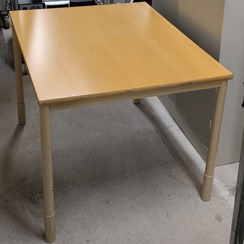 Bordsskiva ljus björkfanéer med smart sladdförvaring på undersidan. Väggfästen i metall som tål tung vikt.