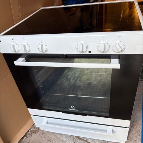 400 volt, ugn och plåtar är helt oanvända. Spishällen väldigt fin.