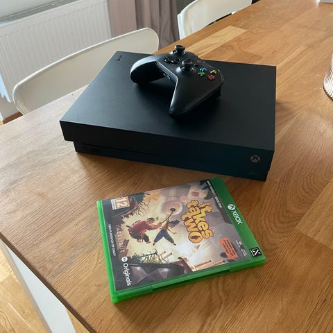 Ett superfint Xbox one X med tillbehör. Använt väldigt sparsamt och fungerar som ett nytt.