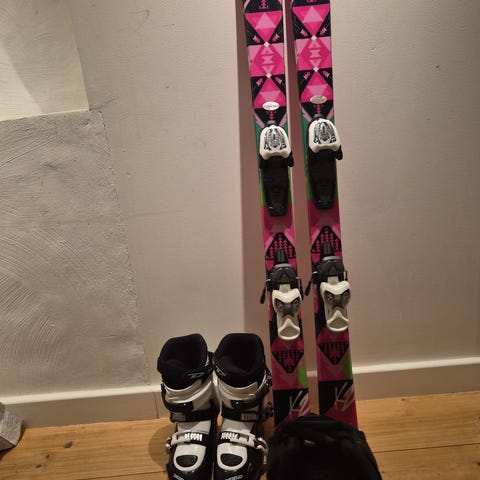 Head Monster Easy skidor (77 cm) med tillhörande bindningar och pjäxor (170-185 mm). Skidorna använda 1 vecka.
