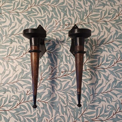 Oanvända mkt dekorativa väggljusstakar liknande de från POV. Passar med värmeljus o stearinljus o en är användbar som vas för dekorativ kvist lr blomma
