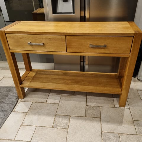 Skänk i solid ek från Mio med två låder och en hylla.