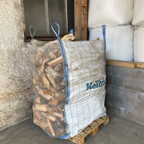 Säljer torr handklyven björkved i 40-liters säck med fri hemleverans för 90kr/säck.