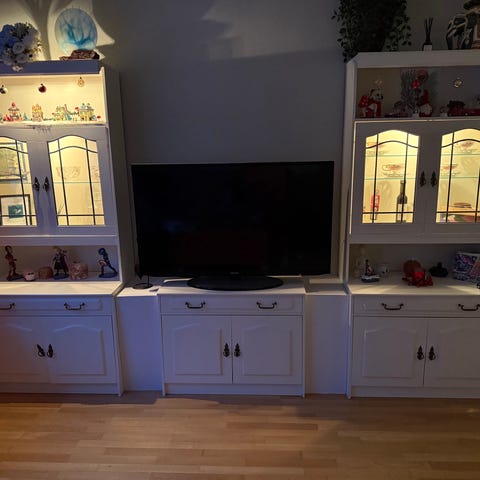 Ett köksskåp med frostad dörr och hyllplan i glas (se bild för nagg) belysning men har ingen aning om den fungerar