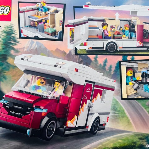 LEGO City Husbil leksak med flera minifigurer och tillbehör. Setet inkluderar en husbil med detaljerad interiör och exteriör, samt figurer som kan användas för rollspel och lek. Samt manual.