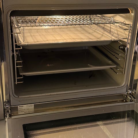 Värme, fläkt och lampa går inte igång efter att vi gjort om elen hemma. Klockan fungerar, enligt bild. Möjligtvis så har någon säkring eller kretskort inne i ugnen gått. Därav priset.