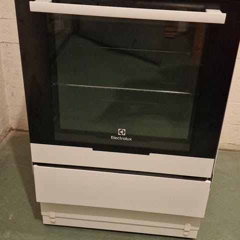 50 cm bred Spis och ugn, vit färg. Utrustad med vred för inställning av temperatur och funktioner. Passar för allmän matlagning och bakning.