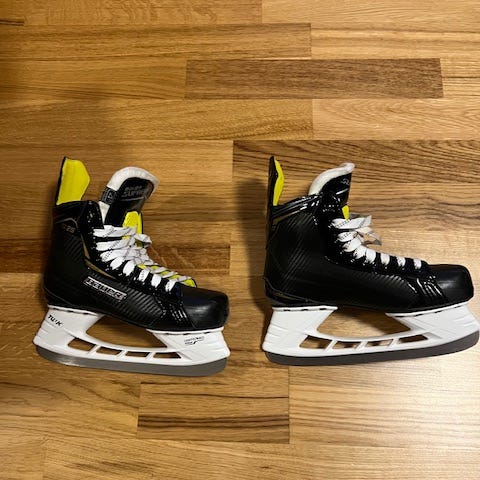 Bauer ishockeyskridskor i storlek 43. Använda vid ett tillfälle och är i mycket gott skick.