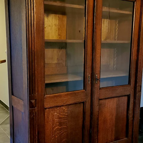 Glasvitrinskåp med spegel och belysning