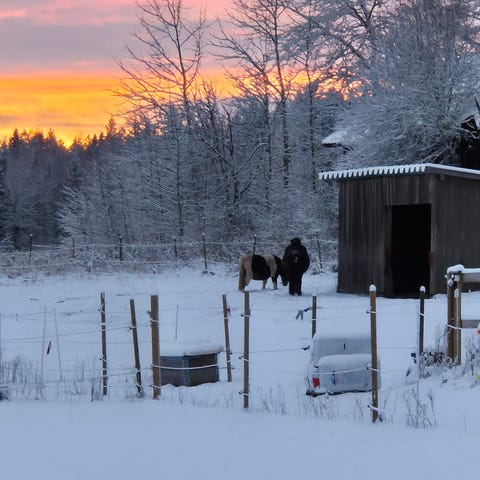 Grovfoder och halm finns på gården.