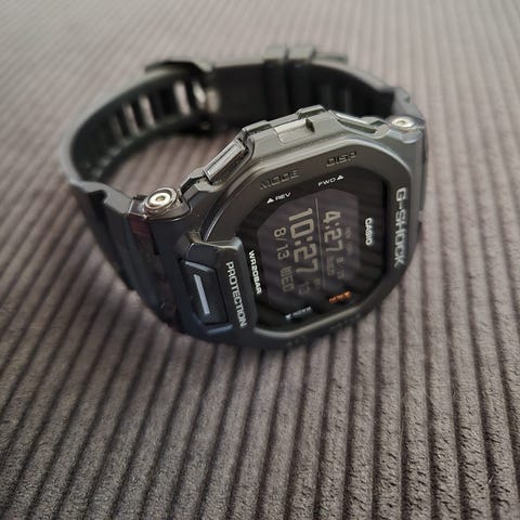 Det är en slitstark och vattentålig G-Shock klocka med solcellsladdning och är automatiskt tidsinställd. Klockan är i bra skick, fåtal små/ytliga repor finns på glaset men är relativt svåra att se, se bilder. Få ytliga repor finns på bandet vid noga granskning. Allt vid köp ingår, se bild.