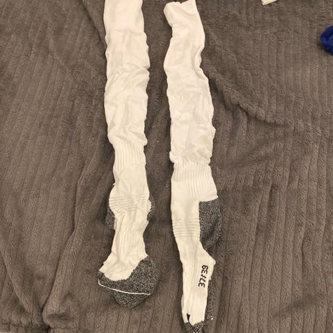 Fotbollsstrumpor för barn i storlek 40, blå färg. Passar för fotbollsspel och är anpassade för barn. Mellan 8-10 år gamla barn