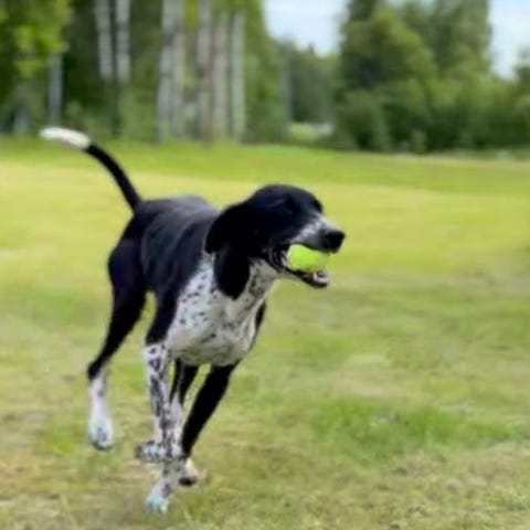 Frisk och alert, inga problem med kloklippning eller hantering, trygg. Rätt liten för sin ras, men det märks inte i spåren.