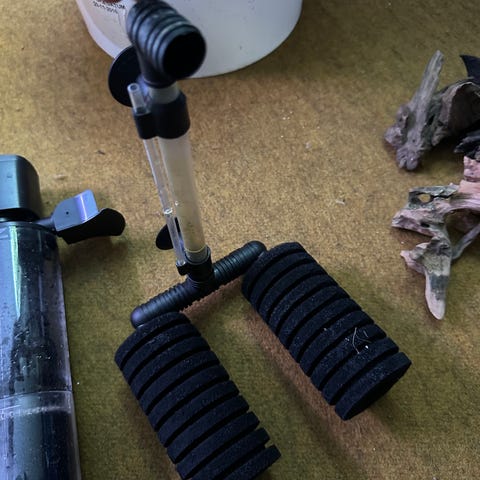 Akvarietillbehör: Paket med pump, värmare, hävert och dekorationer