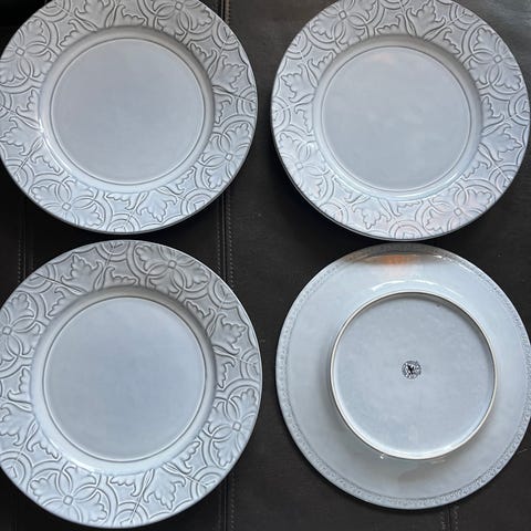 Bordallo Pinheiro tallrikar med handmålat fruktmotiv, inklusive äpplen och päron. Tallrikarna är tillverkade i keramik med detaljer i grönt, rött, gult och brunt. Passar för användning i köket och vid servering. Total 8 st, 2 av varje motiv. 21 cm diameter. Nypris ca. 200 per talrik