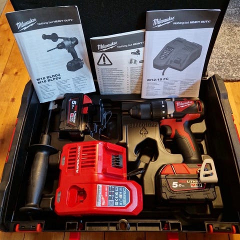 Milwaukee M18 Slagskruvdragare och Borrmaskin Set 18V Röd