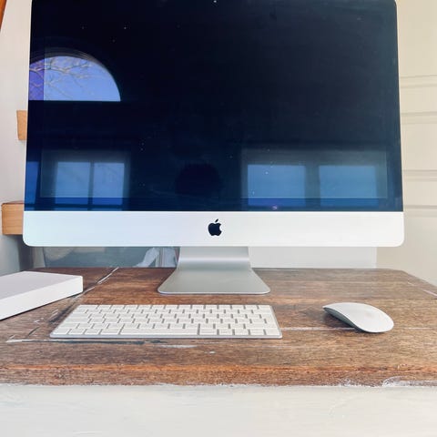 Apple iMac med 24-tums skärm, ljusblå/vit.