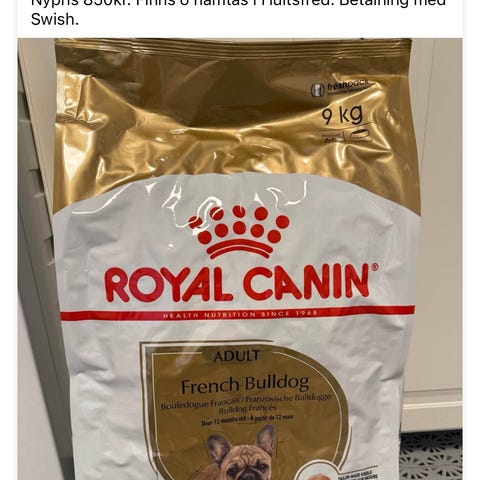 One unopened bag of French Bulldog food by Royal Canin. My dog has decided he no longer likes it…