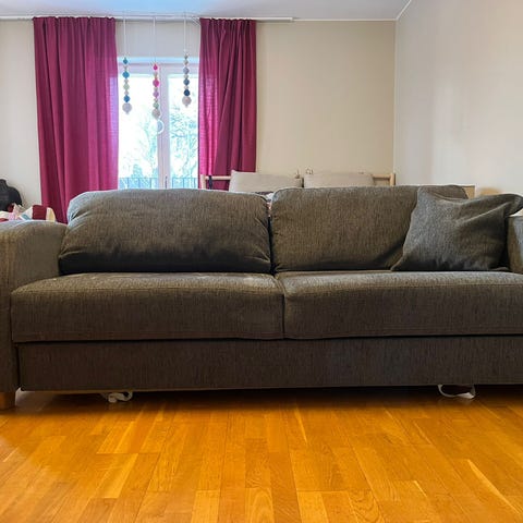 Inköpt mars 2023 (kvitto finns), använd ett fåtal gånger som gästsäng. IKEA ger 10 års garanti. Väldigt skön både att sitta i och sova i.
